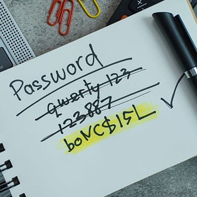 The easiest way to make a password that is both easy to remember and secure is to use passphrases. A passphrase is a string of random words that wouldn’t usually go together, and don’t really have anything to do with you personally. Avoid pet names, family members, phone numbers, zip codes, birthdates, and other personally identifiable information.