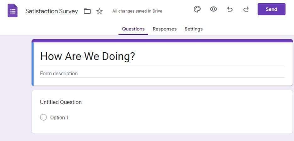Let’s assume this is meant to be a client satisfaction survey, so we’ll update the document name to “Satisfaction Survey” and call the form “How Are We Doing?”